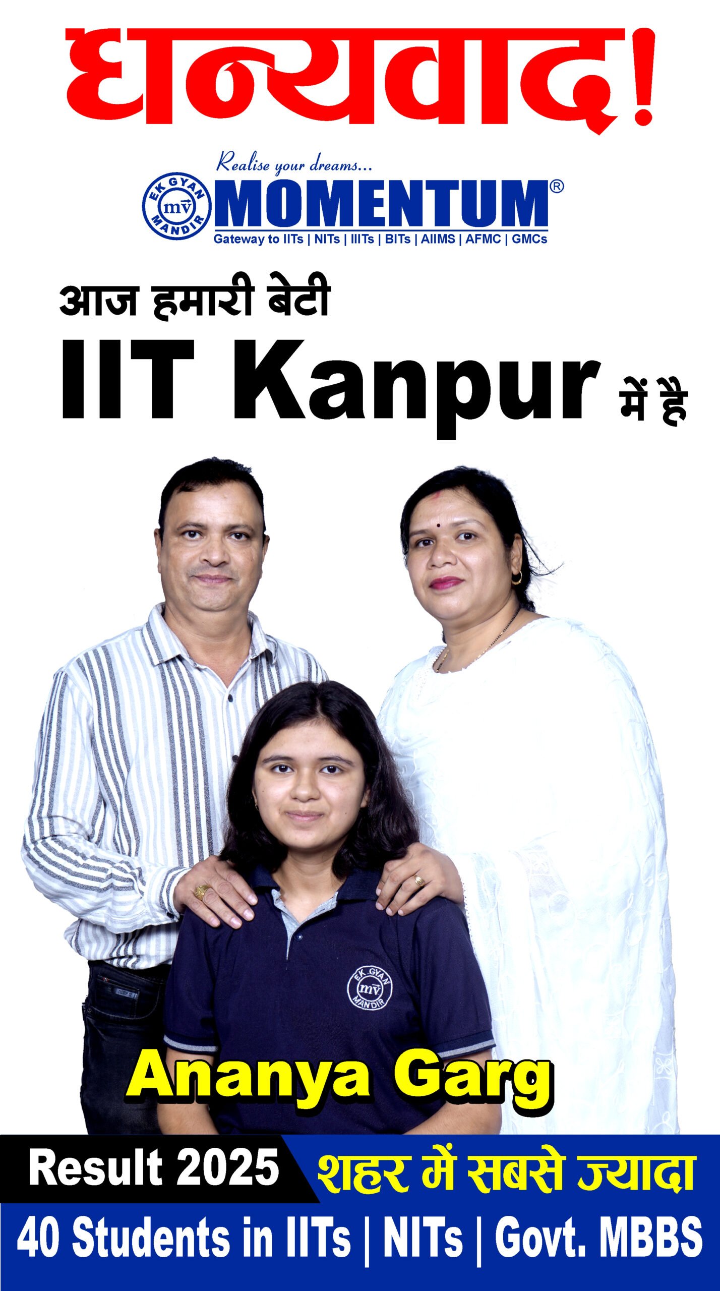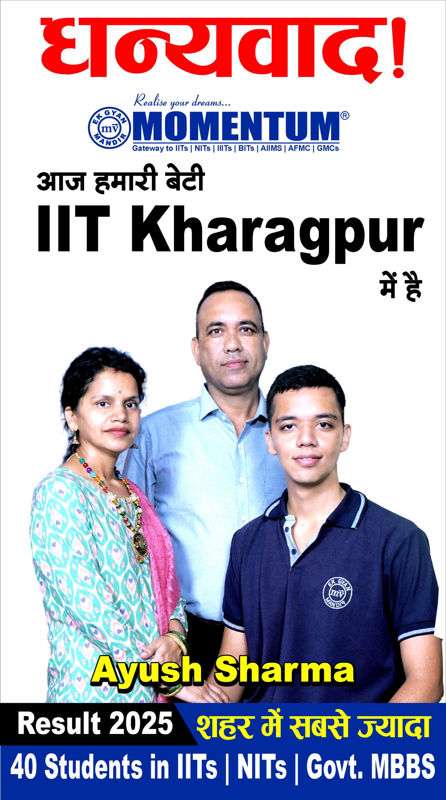 Thanks to Momentum Academy, I cleared JEE and reached IIT Kanpur. Teachers were approachable, cleared all doubts, and kept me motivated throughout my journey.