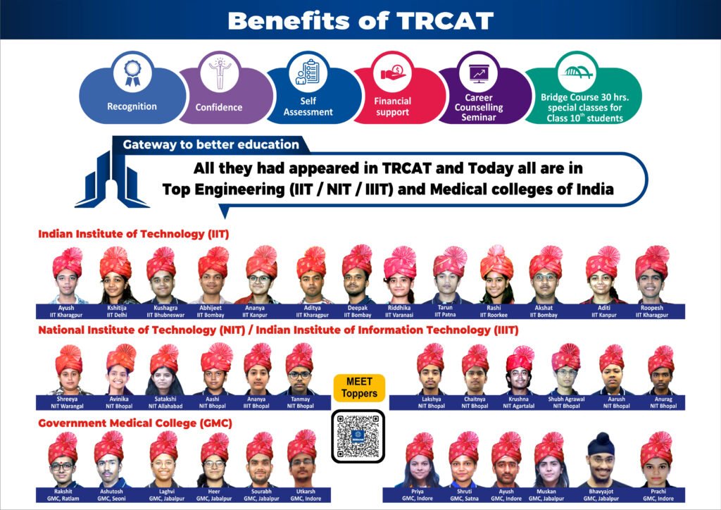 TRCAT is your gateway to success in JEE, NEET, and beyond. Designed for students from Class 7 to 11, the test not only assesses potential but also opens doors to scholarships of up to 100% in tuition fees.